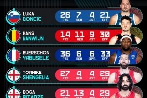 欧锦赛官推晒昨日高光表现:东契奇26分7板4助 亚布塞莱36分6板