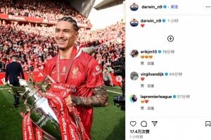 努涅斯社媒告别红军晒英超冠军奖杯:利物浦永远是我人生的一部分